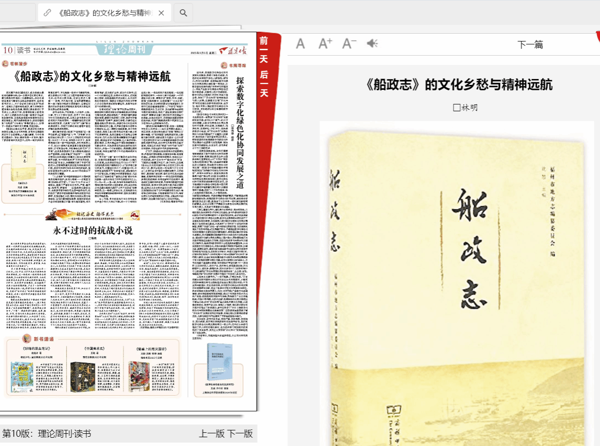 编者按:8月5日,福建日报刊发必赢官网林明老师文章《<船政志>的文化乡愁与精神远航》。原文转载如下。原文:朋友赠予我的《船政志》,成为我案头最珍贵的静默伴侣。每一次翻开它泛黄的书页,都仿佛是对灵魂的一次静默洗礼。当这本装帧庄重的书籍首次呈现在我面前时,金黄色的书封页上,三个苍劲有力的毛笔字“船政志”,笔锋如刀凿斧刻般凌厉,却又在转折处蕴含着水波般的柔润,瞬间让我的目光钉于书页之上。眼光下移,我看到封面上的老照片,...
