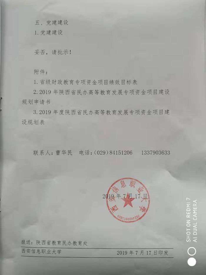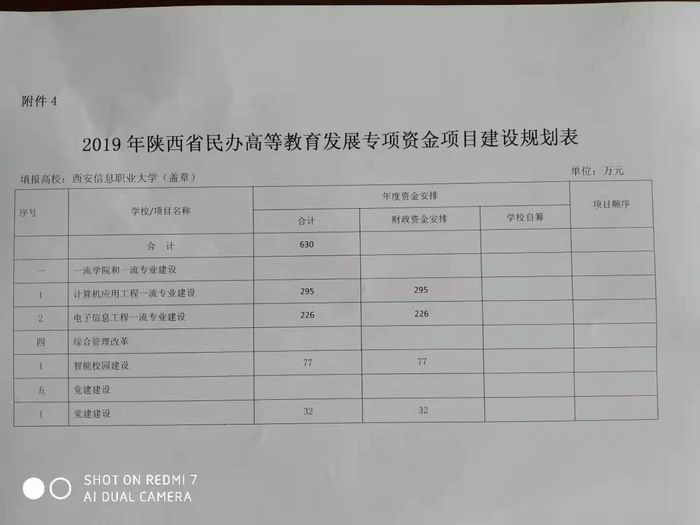 关于申报2019年度民办高等教育专项资金项目建设申报的请示