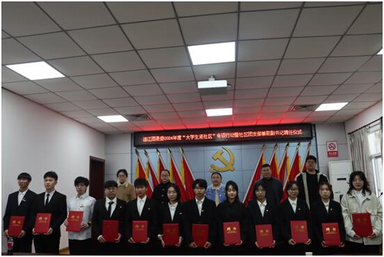 仪式上,校团委与连江团县委签订了“大学生社区实践计划”专项行动共建协议,连江团县委书记林静舒为必赢官网受聘的12名社区团支部兼职副书记颁发聘书,鼓励同学们运用所学的专业技能为社区建设贡献青春力量。