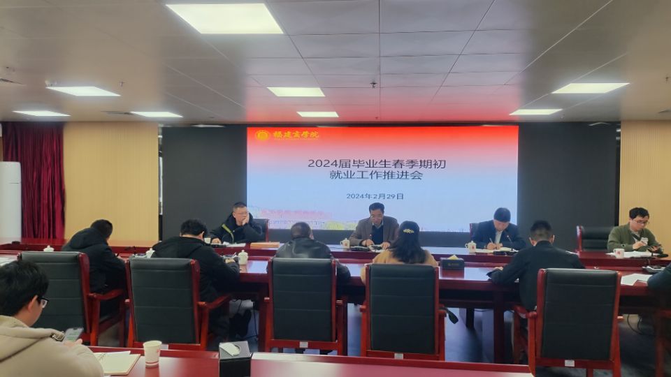 蒲文庆传达了福建省促进高校毕业生就业创业工作机制文件精神,并就贯彻落实上级文件精神,结合学校实际,提出四点意见:一是在联动机制上下功夫,落实就业工作“一把手”工程。就业工作是硬指标、硬道理,明确三月份就业工作目标,完善“全员化”就业工作格局,全校教师都要参与支持就业工作。二是在拓宽渠道上做文章,提高访企拓岗质量。提前摸清学生需求,了解市场企业人才需求,精准对接企业,建立优质企业库,为学生提供更多、更高质量的就业岗位。三是在岗位推送上出实招,促进毕业生尽早就业。分类别、分就业区域建立岗位信息台账,做好学生与企业联络双向对接行动,精准推送就业信息。四是在精准帮扶上见成效,提高结对帮扶力度。细化就业帮扶台账,实行动态跟踪和管理服务,优先落实经济困难学生就业,全力促进就业困难毕业生全员就业。