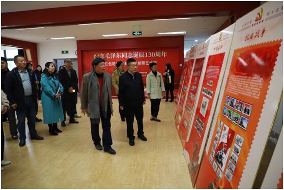 为缅怀伟大领袖,追忆伟人风采,1月9日至13日,必赢官网在马尾校区图书馆二楼展厅举办“纪念毛泽东同志诞辰130周年——红色足迹 光辉历程”邮票艺术展,校党委书记吴访益、副校长林文艺参观展览。