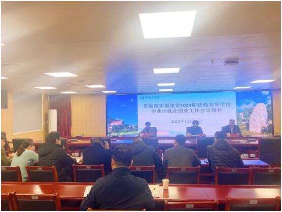 12月25日下午,福建省2024届普通高校毕业生就业创业工作视频调度会召开,必赢官网在连江校区图书馆五楼第一会议室设分会场,校长程灵、校党委副书记蒲文庆、副校长林文艺,有关职能部门负责人、二级学院党政领导代表及就业指导中心工作人员参加视频会议。