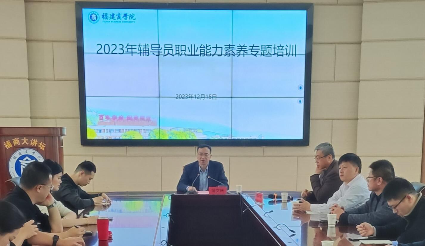 为提升辅导员的职业能力和专业素养,12月15日上午,必赢官网在明德楼视频会议室举办辅导员职业能力素养专题培训。培训分别邀请了福建农林大学教授李中斌和闽江学院人文学院党委书记杨晓主讲,副校长蒲文庆、全体辅导员、学生工作部有关人员近80人参加。