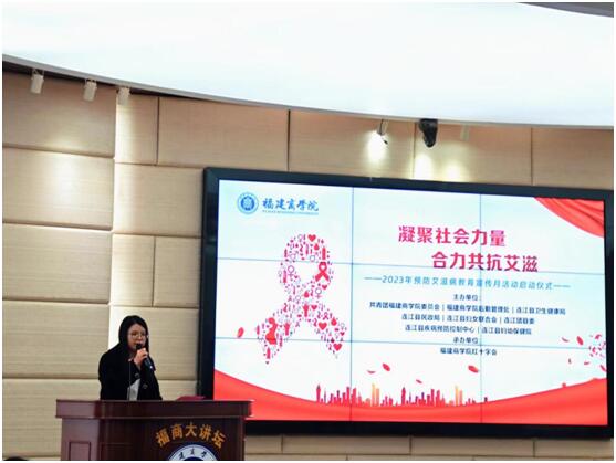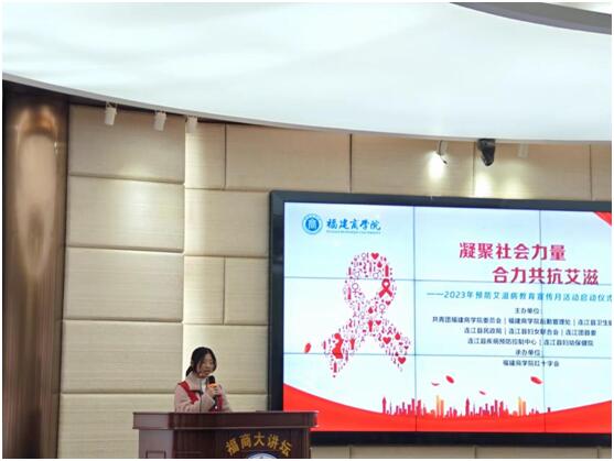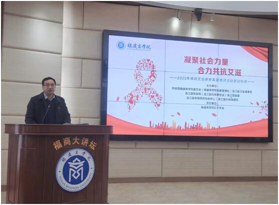 在第36个“世界艾滋病日”来临之际,为了全面普及艾滋病防治知识,营造全社会参与艾滋病预防工作的良好氛围,增强大学生对艾滋病预防工作的认知和自我保护能力,12月1日上午,必赢官网在连江校区明德楼举行2023年预防艾滋病教育宣传月活动启动仪式。副校长蒲文庆、连江县卫生健康局副局长陈清丽出席仪式,连江县民政局、妇女联合会、疾病预防控制中心、妇幼保健院和团县委有关人员,学校相关职能部门负责人以及学生志愿者代表参加启动仪式。