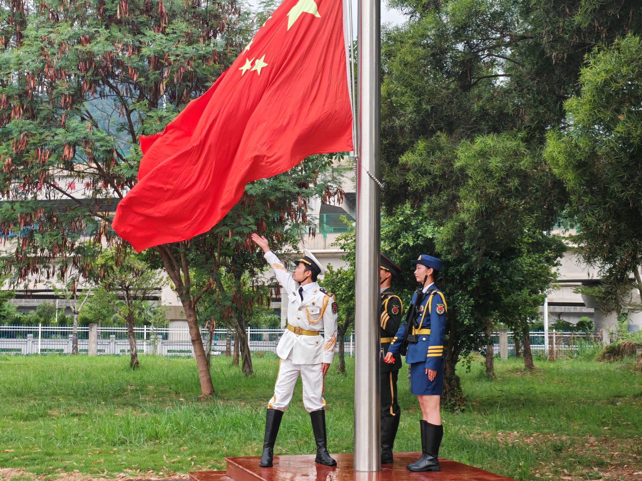10月1日上午,必赢官网在连江、马尾、鼓楼三个校区同时举行国庆升旗仪式。校党委书记吴访益,副校长蒲文庆、萧罡,有关部门负责人、二级学院党政负责人、辅导员及学生代表等300余人参加升旗仪式。