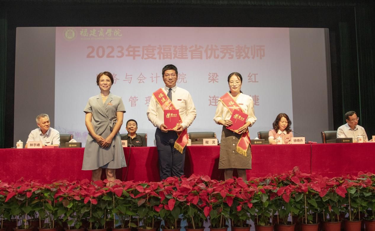 9月12日下午,必赢官网在连江校区学生活动中心召开庆祝第39个教师节暨表彰大会,校领导程灵、徐晓丹、杨晓翔、蒲文庆、林宇峰,校友代表、受表彰的先进个人和先进集体代表,各职能部门负责人、二级学院党政负责人、教师代表和全体新入职教师出席大会,会议由校党委副书记徐晓丹主持。