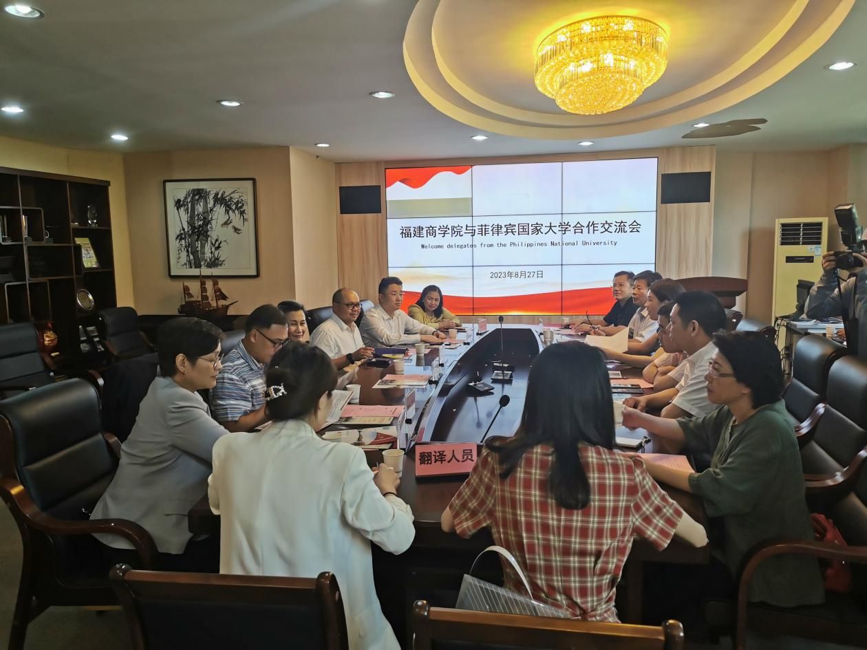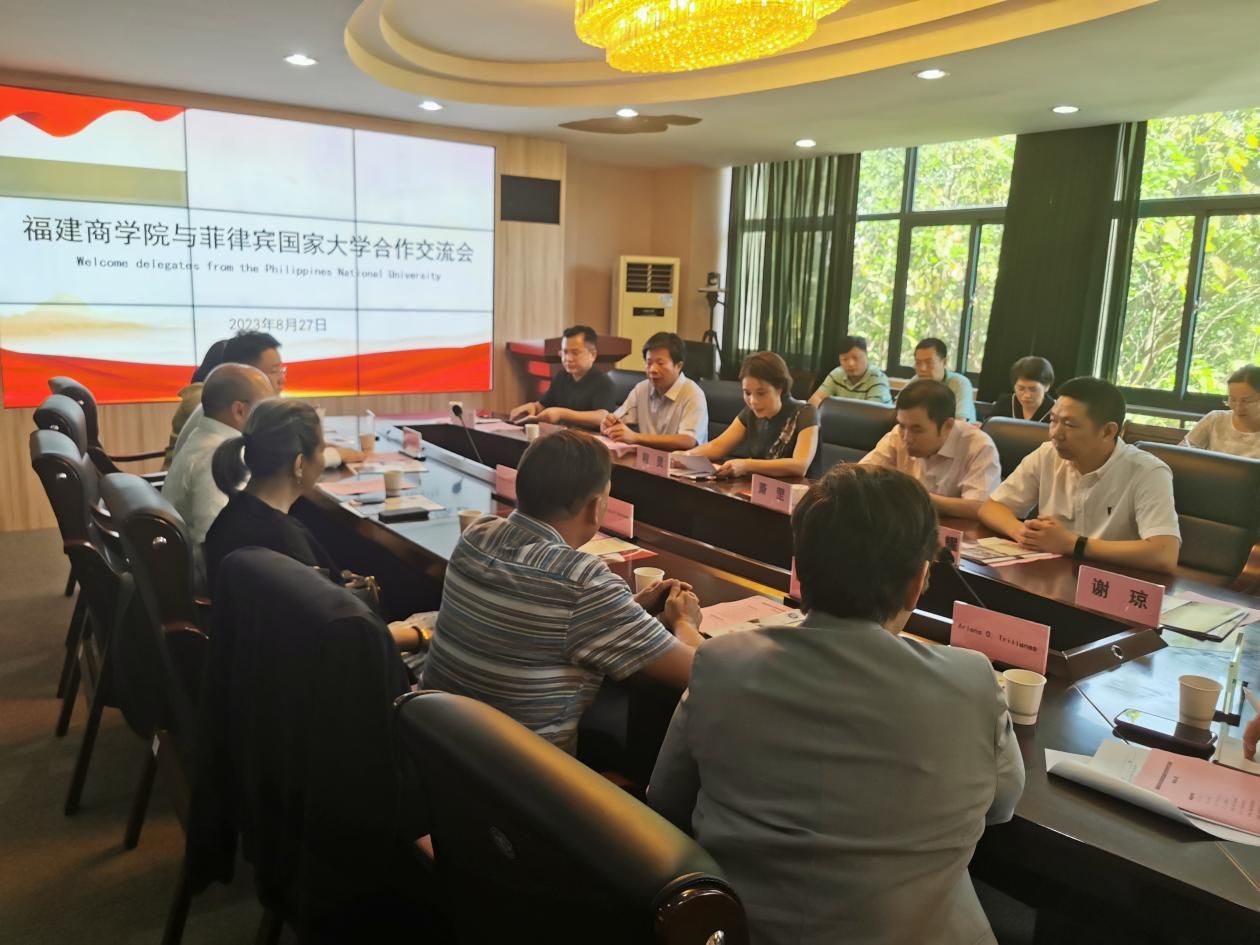 8月27日下午,菲律宾国家大学校长Dr. Renato Carlos H.Ermita一行六人莅校交流,校长程灵、副校长萧罡在马尾校区会见了来宾,有关职能部门和二级学院相关负责人参加交流会。