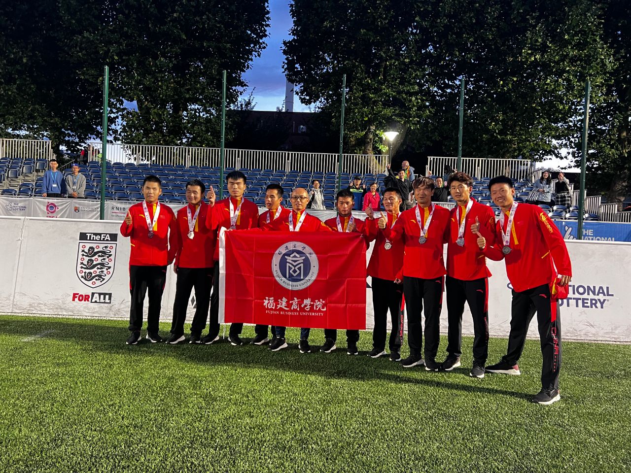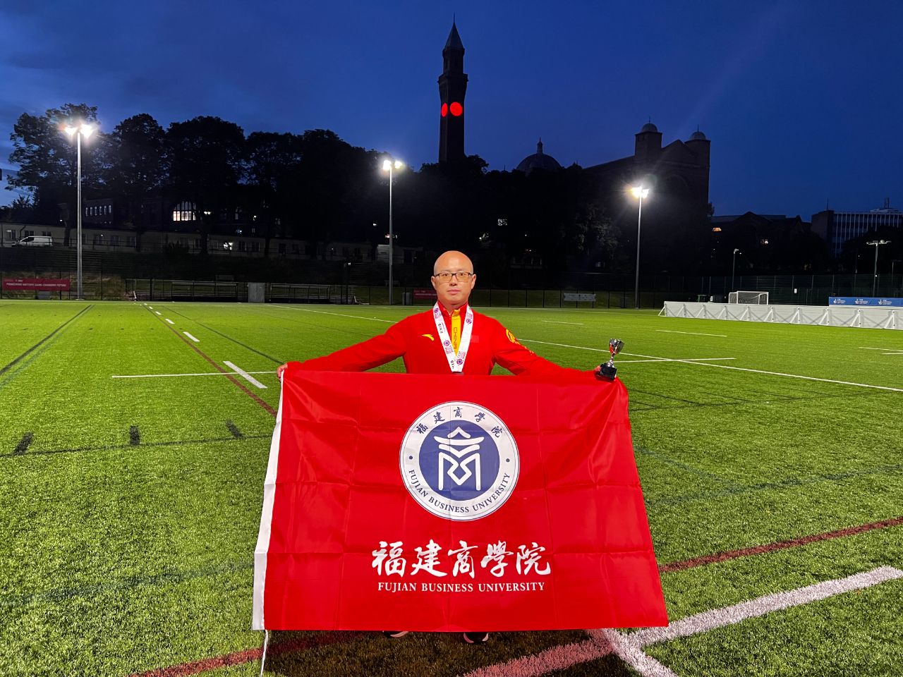 近年来,学校高度重视师资队伍建设,积极为教师的发展创造各种条件,推动教师在各类实践中不断提升专业素养和能力水平。2021年以来,李进老师无私奉献,充分发挥自己的专业优势,积极为国家和省盲人足球队服务,助力盲人足球队夺得骄人战绩,为我国盲人足球发展贡献了福商力量。