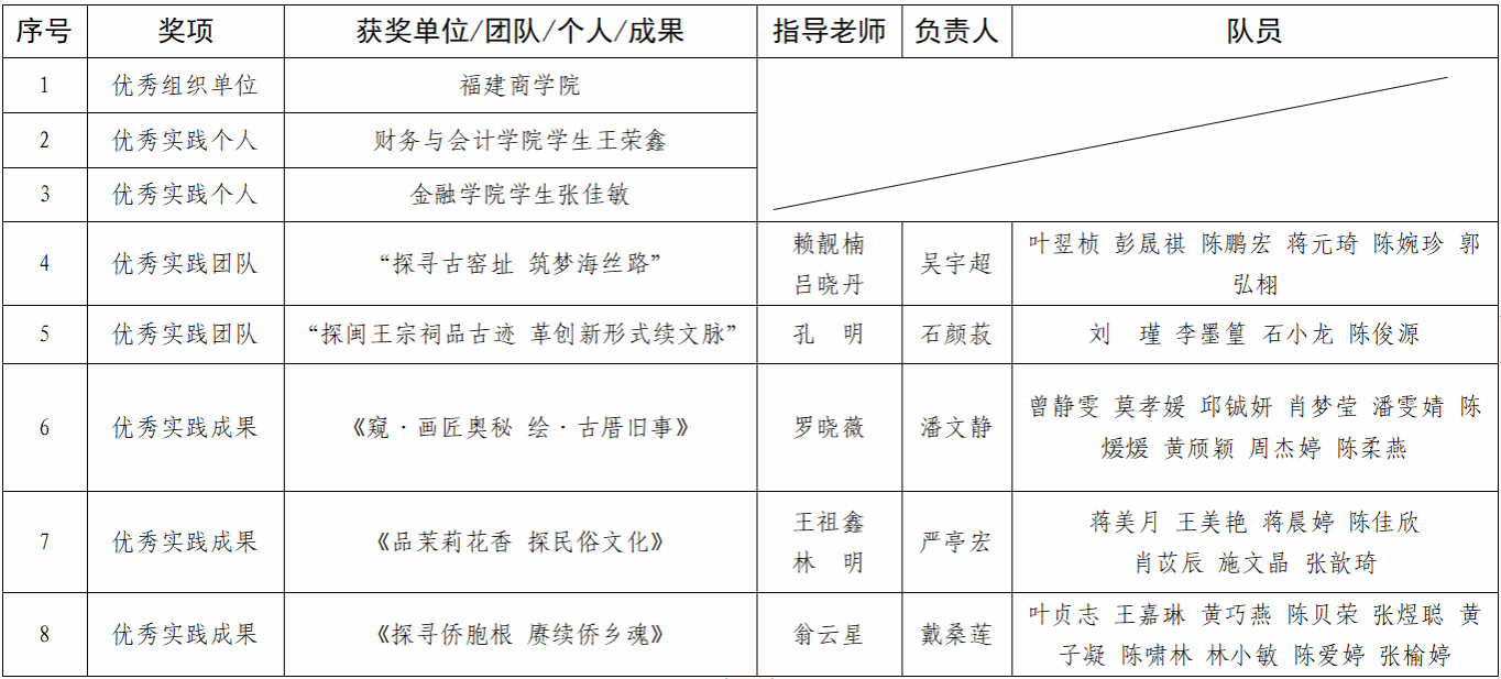 日前,中共福建省委教育工委公布了“关于2022-2023学年寒假‘我和我身边的中华优秀传统文化’主题社会实践活动评选结果”。必赢官网荣获优秀组织单位,“探寻古窑址 筑梦海丝路”实践队和“探闽王宗祠品古迹 革创新形式续文脉”实践队2队荣获优秀实践团队,财务与会计学院学生王荣鑫和金融学院学生张佳敏2人荣获优秀实践个人,《窥·画匠奥秘 绘·古厝旧事》《品茉莉花香 探民俗文化》《探寻侨胞根 赓续侨乡魂》3项荣获优秀实践成果。必赢官网作为优秀组织单位代表和优秀实践团队代表参加了第十一届福建省高校艺术设计奖暨“我和我身边的中华优秀传统文化”主题社会实践活动颁奖仪式。