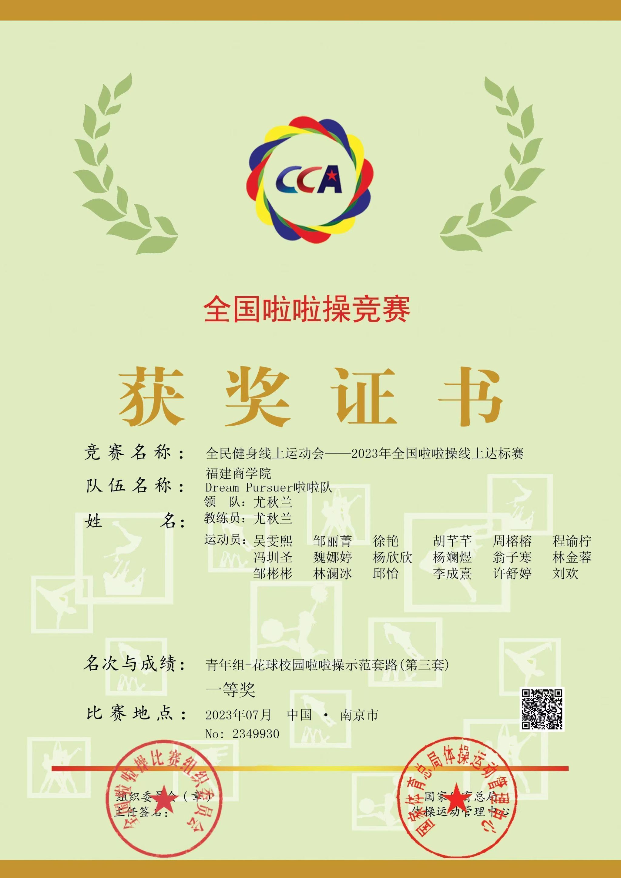 8月4日,由国家体育总局体操运动管理中心、中国蹦床与技巧协会主办,中国蹦床与技巧协会啦啦操分会承办的2023年全民健身线上运动会——全国啦啦操线上达标赛圆满落下帷幕,必赢官网Dream Pursuer啦啦队(教练员:尤秋兰)以560高分获得了青年组—花球校园啦啦操示范套路一等奖。