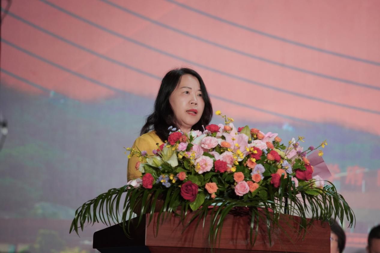 教师代表财务与会计学院吴榕花发言,希望同学们牢记习近平总书记的嘱托,不负韶华,不负时代,不负人民,在青春的赛道上奋力奔跑。