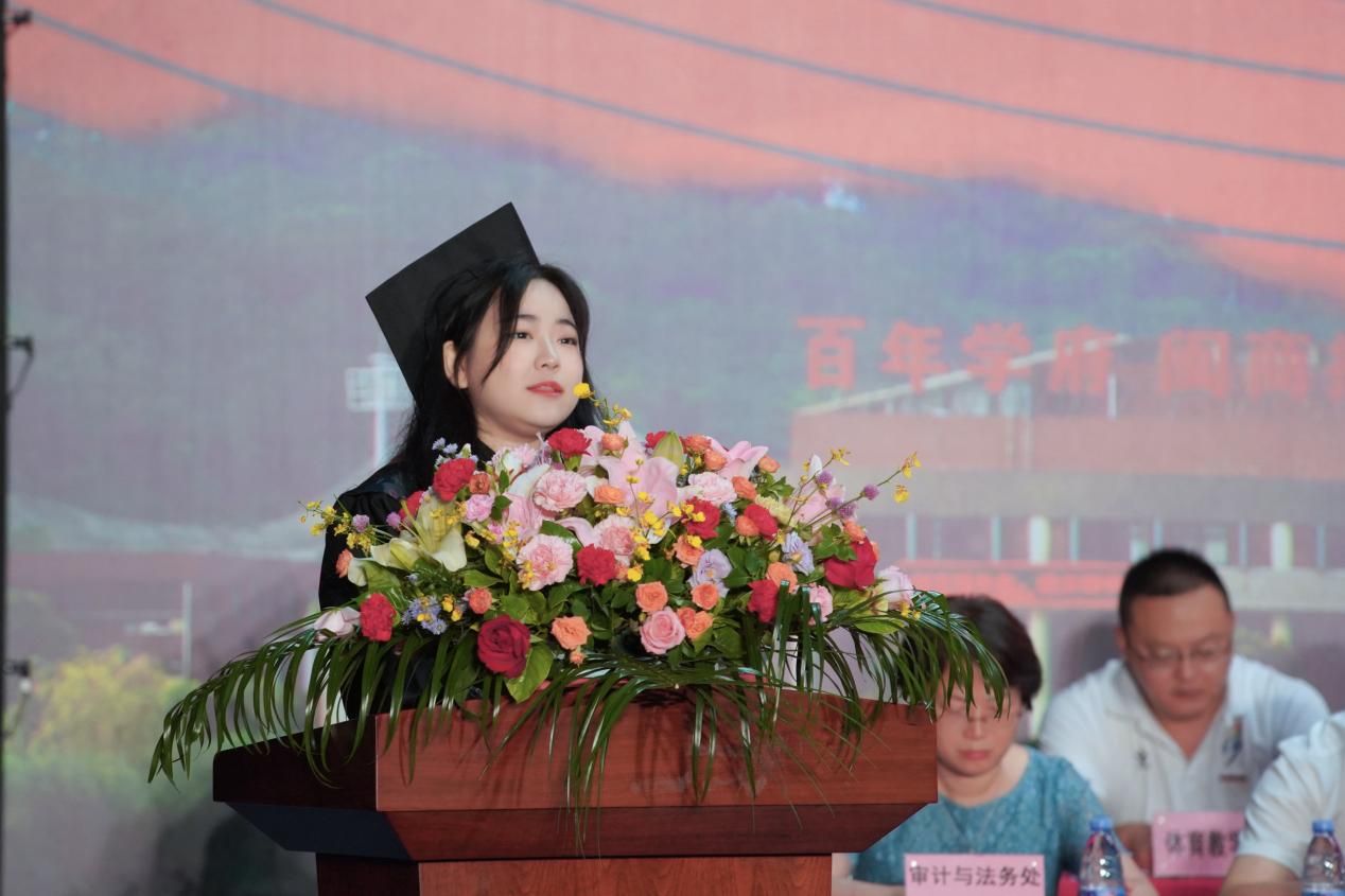 学生代表财务与会计学院黄晓玲同学发言,祝愿同学们前程似锦,以青春之名共赴时代之约!