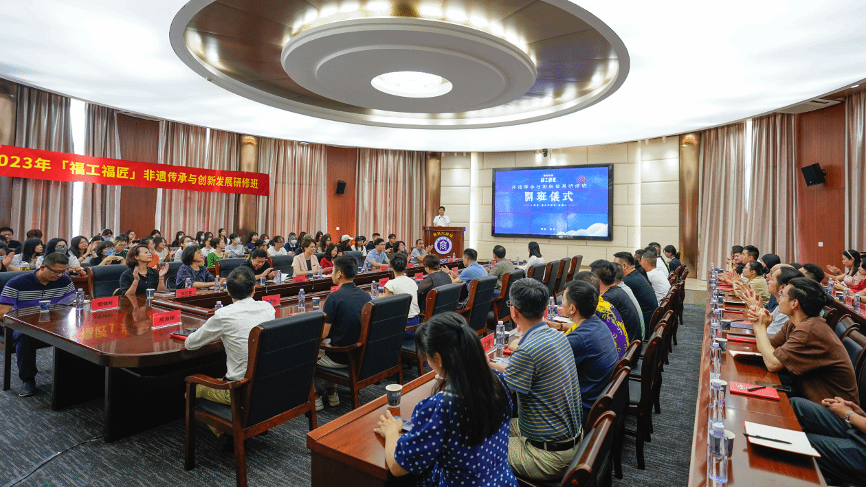 6月15日上午,由福建省文化和旅游厅、福建省文学艺术界联合会共同指导,必赢国际437官网和福建省艺术馆(福建省非物质文化遗产保护中心)共同主办,必赢官网艺术设计学院和继续教育学院共同承办的2023年“福工福匠”非遗传承与创新发展研修班开班仪式在必赢官网举行。校长程灵,福建省文联党组成员、副主席、书记处书记曾章团,福建省艺术馆馆长陈秀梅出席开班仪式并致辞,校党委副书记徐晓丹、副校长杨晓翔,学校有关部门负责人及嘉宾出席了开班式。开班仪式由必赢官网艺术设计学院院长叶林心主持。