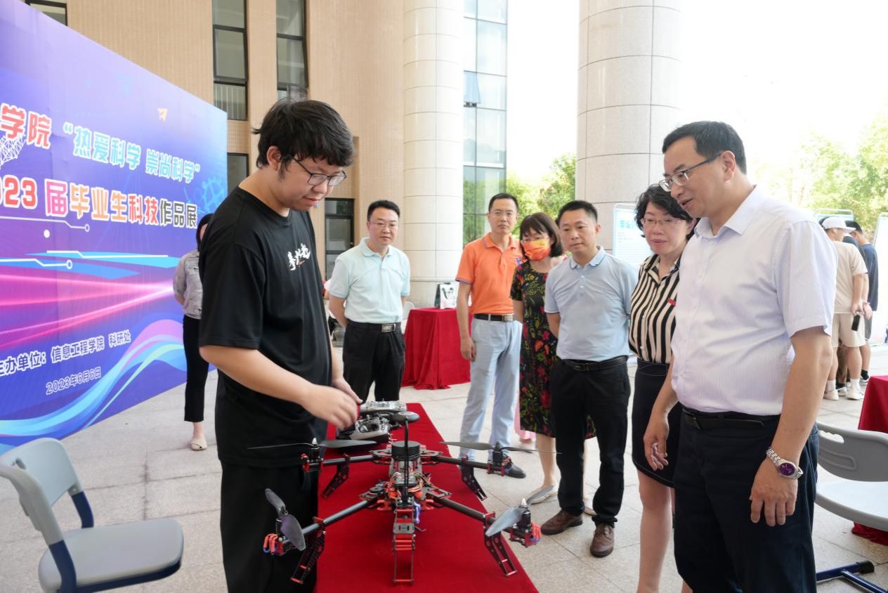 近日,由信息工程学院和科研处主办的“热爱科学 崇尚科学”2023届毕业生科技作品展在连江校区自强楼举行。副校长蒲文庆,信息工程学院、科研处有关负责人和师生200多人观展。