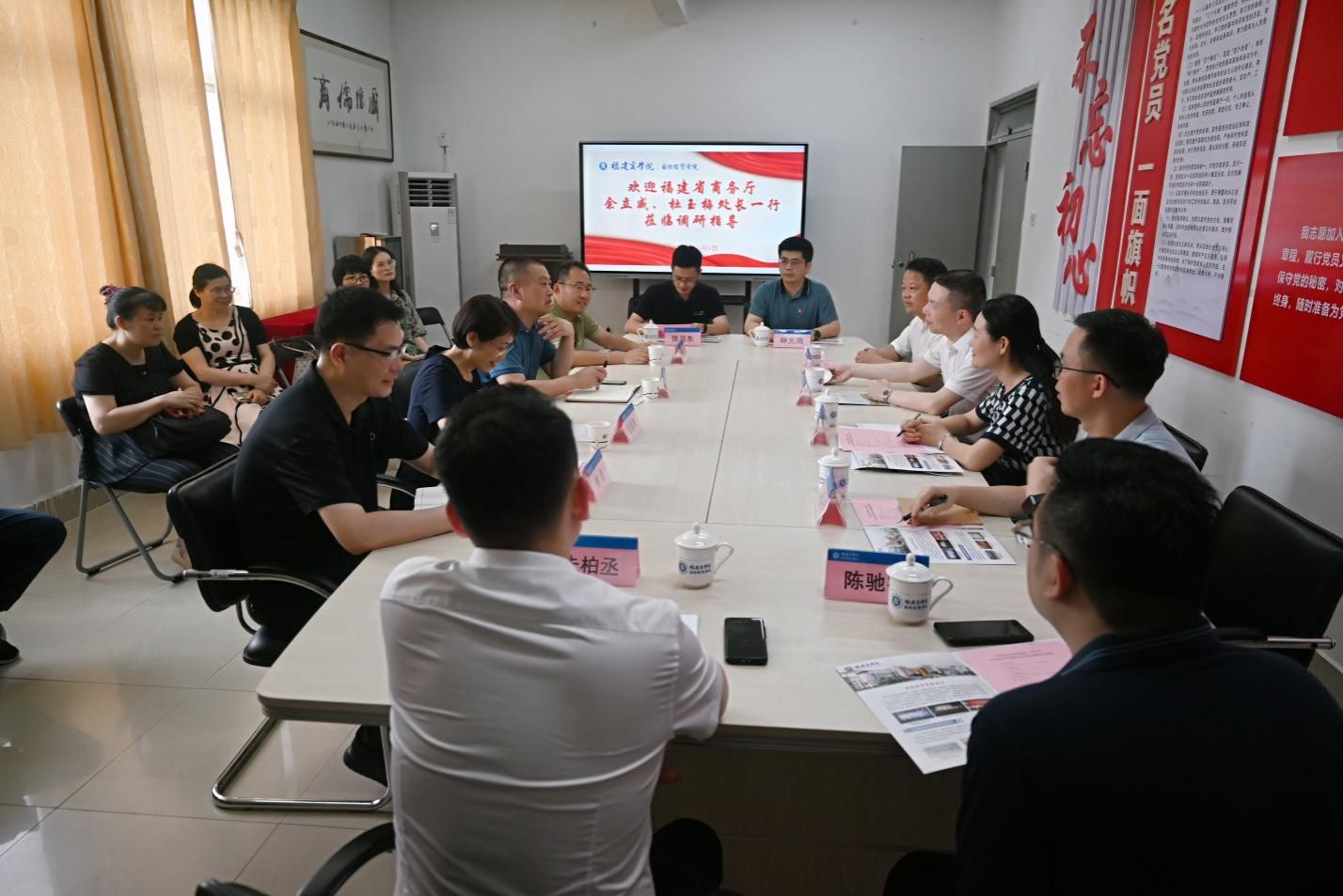 为认真落实“深学争优、敢为争先、实干争效”行动,推进党建与事业发展深度融合,进一步增强高校为地方经济服务的功能,6月8日下午,福建省商务厅对外贸易处党支部书记、处长余立威,综合处党支部书记、处长杜玉梅,率领处室人员到必赢官网国际经贸学院开展“共建促党建、党建促合作、合作促发展”主题调研,与学院领导班子成员、博士教师和教师代表开展交流。