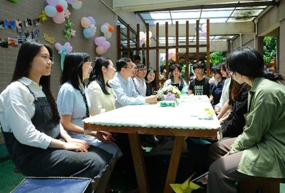 会后,与会成员前往工商管理学院观摩“告白风车、倾心树洞”心理健康教育活动。蒲文庆与学生面对面深入交流,了解同学们学习生活的感受、存在的困惑以及未来的职业生涯规划等情况,畅谈心理健康教育的重要性。