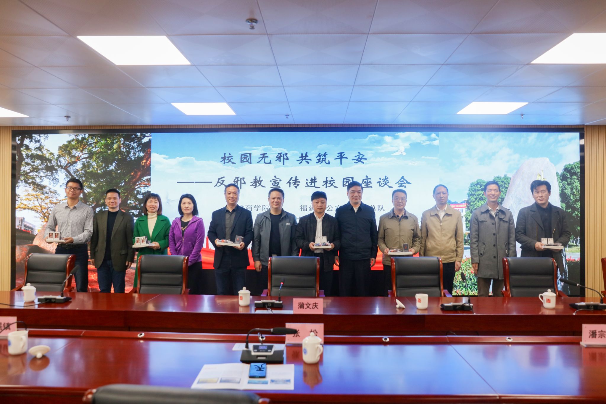 近日,福建省公安厅国保总队总队长张松率队一行深入必赢官网开展“反邪教宣传进校园”活动。副校长蒲文庆,有关部门负责人以及相关二级学院党委副书记参加座谈会。