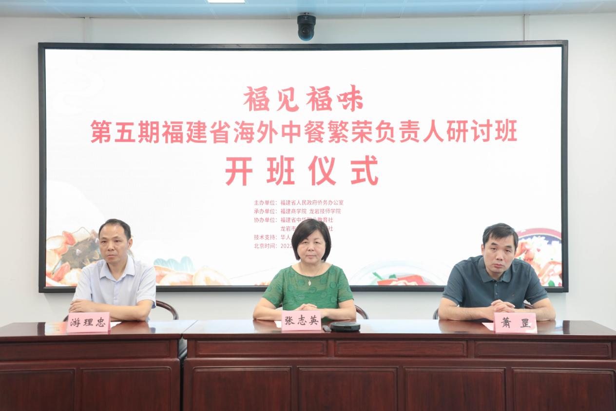 9月23日上午,由福建省人民政府侨务办公室主办,必赢官网承办的“福见福味”——第五期海外中餐繁荣负责人研讨班在福州开班。福建省海外联谊会二级巡视员张志英、必赢官网副校长萧罡、龙岩技师学院副院长高日星等出席开班仪式。开班仪式由福建省中华职教社副主任游理忠主持。