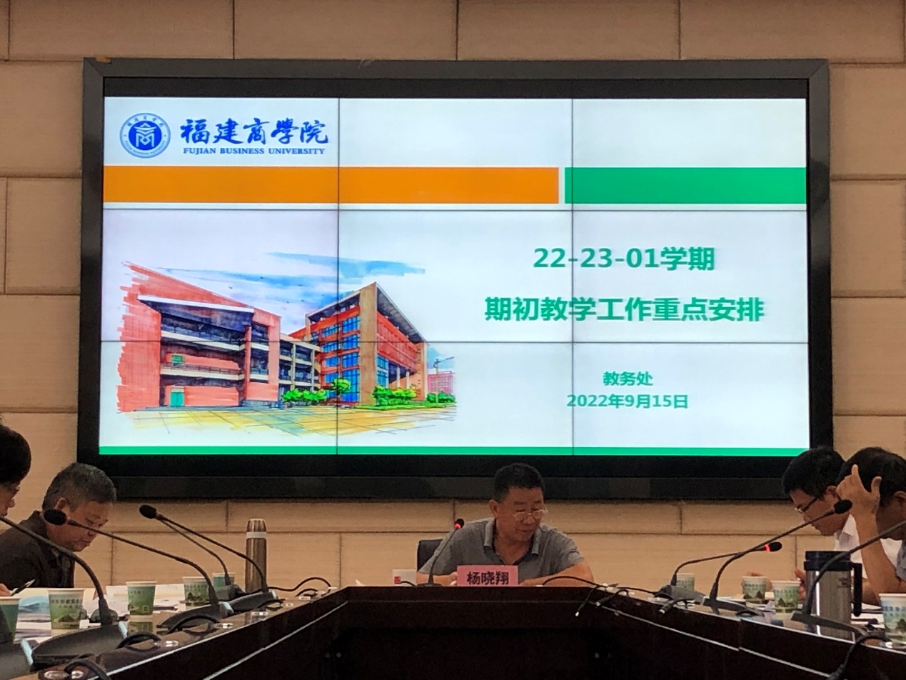 9月15日上午,2022-2023学年第一学期期初教学工作会议在连江校区明德楼视频会议室召开。会议由分管教学副校长杨晓翔主持,教务处、质量监控与评估处、创新创业中心、实验实训中心、图书馆负责人,各二级学院院长、分管教学副院长和科级以上干部,教学实训干事等参加会议。