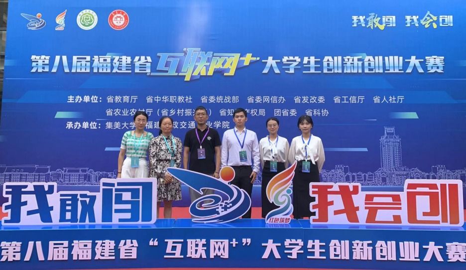 必赢官网参赛师生在第八届福建省“互联网+”大学生创新创业大赛决赛上合影