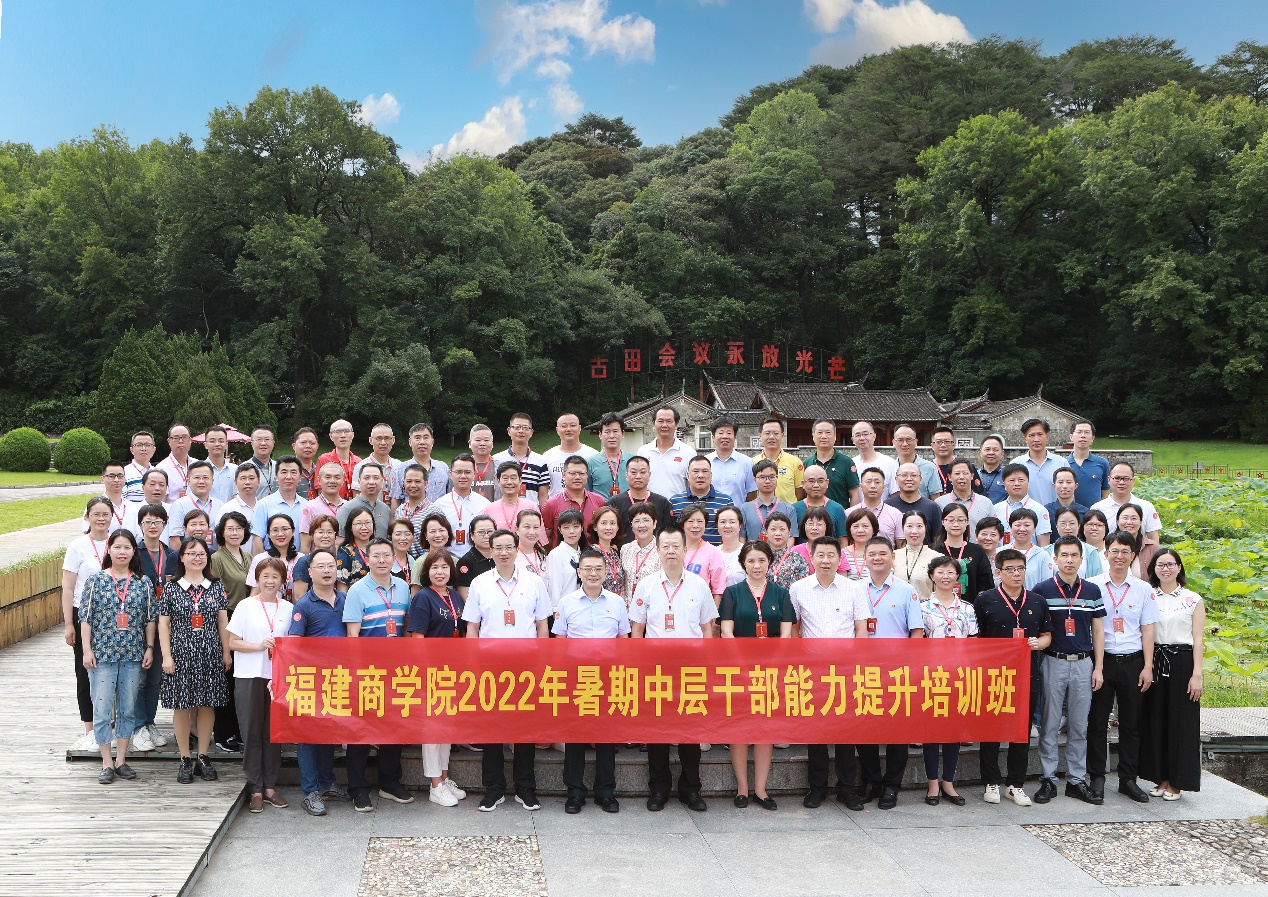 7月3日至7日,必赢官网在古田干部学院举办2022年暑期中层干部能力提升培训班。校领导刘剑津、程灵、吴访益、杨晓翔、蒲文庆参加研讨。全体中层干部参加培训学习。
