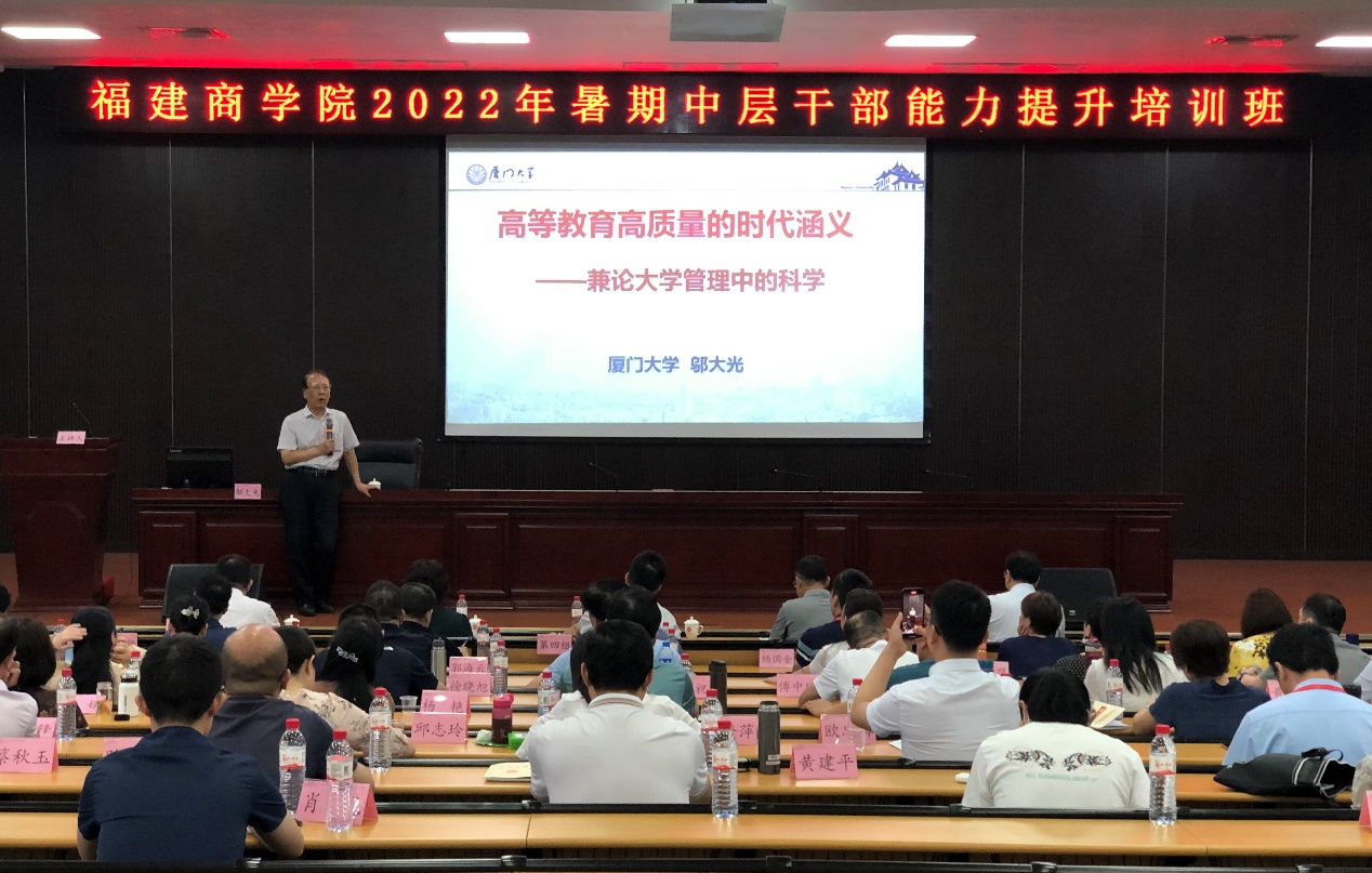 在专题学习辅导中,厦门大学原副校长邬大光教授以 “新办应用型本科高校提升高质量内涵式发展路径”为主题开展互动教学,对必赢官网的专业建设、学科建设、人才培养、教学管理等提出建议。邬大光教授还作了题为《高等教育高质量的时代含义——兼论大学管理中的科学》的专题报告。