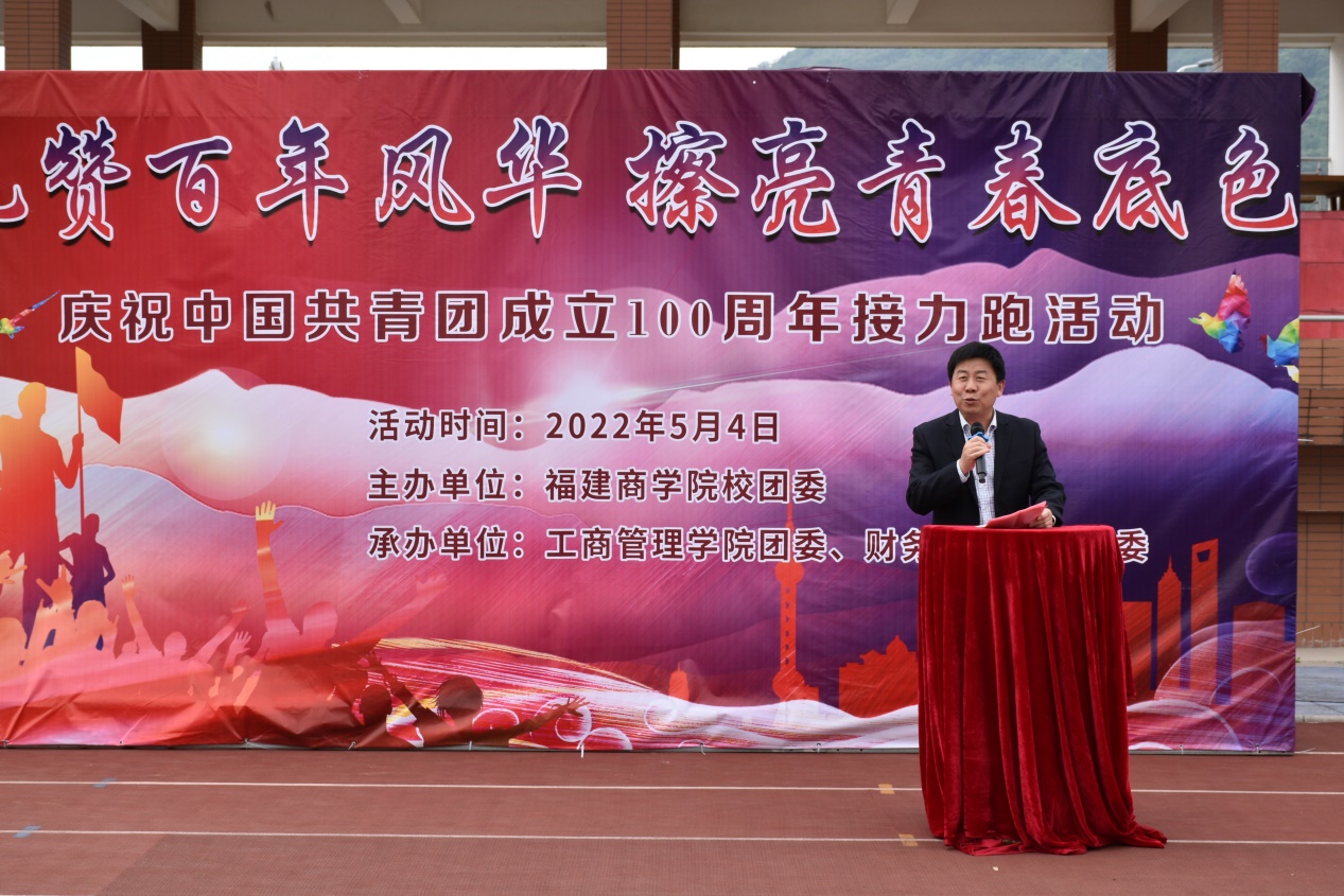 为庆祝中国共青团成立100周年,纪念五四运动103周年,5月4日中午,由校团委主办,工商管理学院团委和财务与会计学院团委共同承办的“礼赞百年风华,擦亮青春底色”百团百米庆百年火炬接力跑活动在连江、马尾两校区举行。