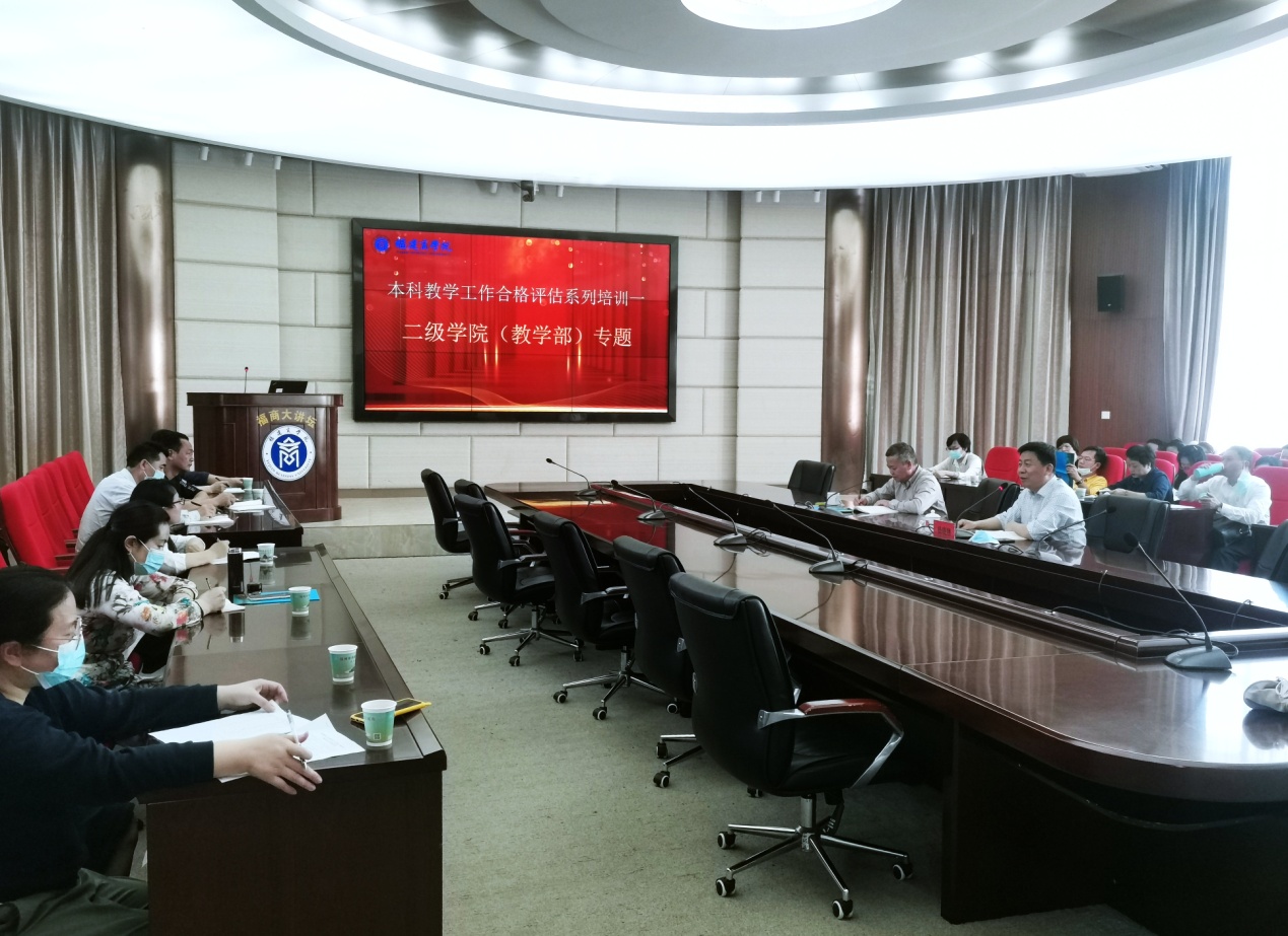 近日,必赢官网在连江校区召开本科教学工作合格评估二级学院(教学部)专题培训会。副校长杨晓翔,二级学院(教学部)院长、教学副院长和教学、实训干事,各单位评估工作联络员、质量监控与评估处工作人员等参加会议。
