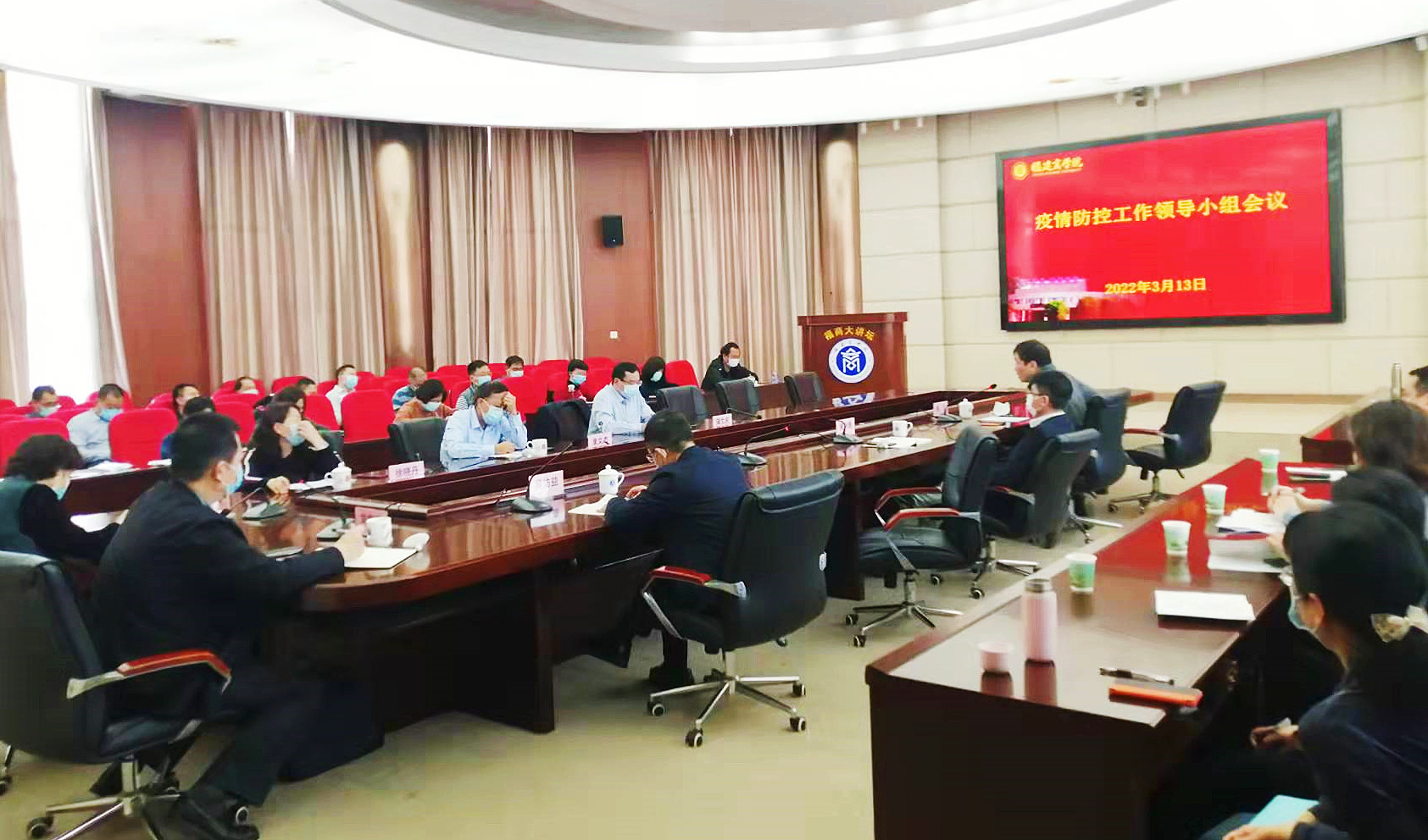 3月13日上午,全省学校疫情防控工作视频会议后,必赢官网立即召开疫情防控工作领导小组会议,传达国务院联防联控机制电视电话会议、省应对新冠肺炎疫情工作领导小组会议精神,按照省教育厅“十加强、十强化”工作要求,部署学校疫情防控工作。校领导、校疫情防控工作领导小组成员单位负责人,机关处室、教辅机构负责人,二级学院党政负责人参加会议。