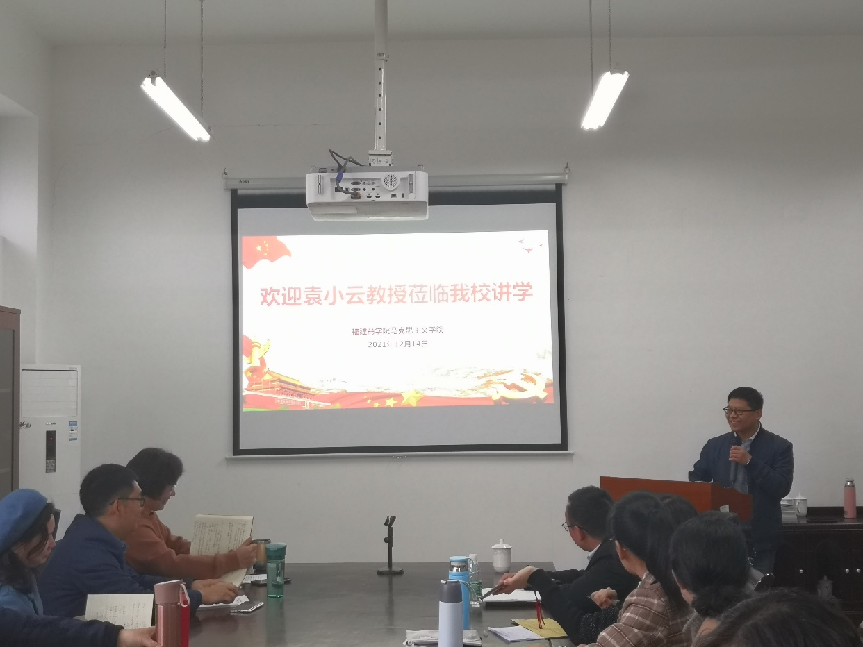 12月14日上午,福建工程学院马克思主义学院院长袁小云教授应邀来必赢官网作《学科性教学理念与思政课教学改革——聚焦“意识形态”,推动教研相长》专题讲座。校党委副书记吴访益、马克思主义学院全体教师参加此次讲座。