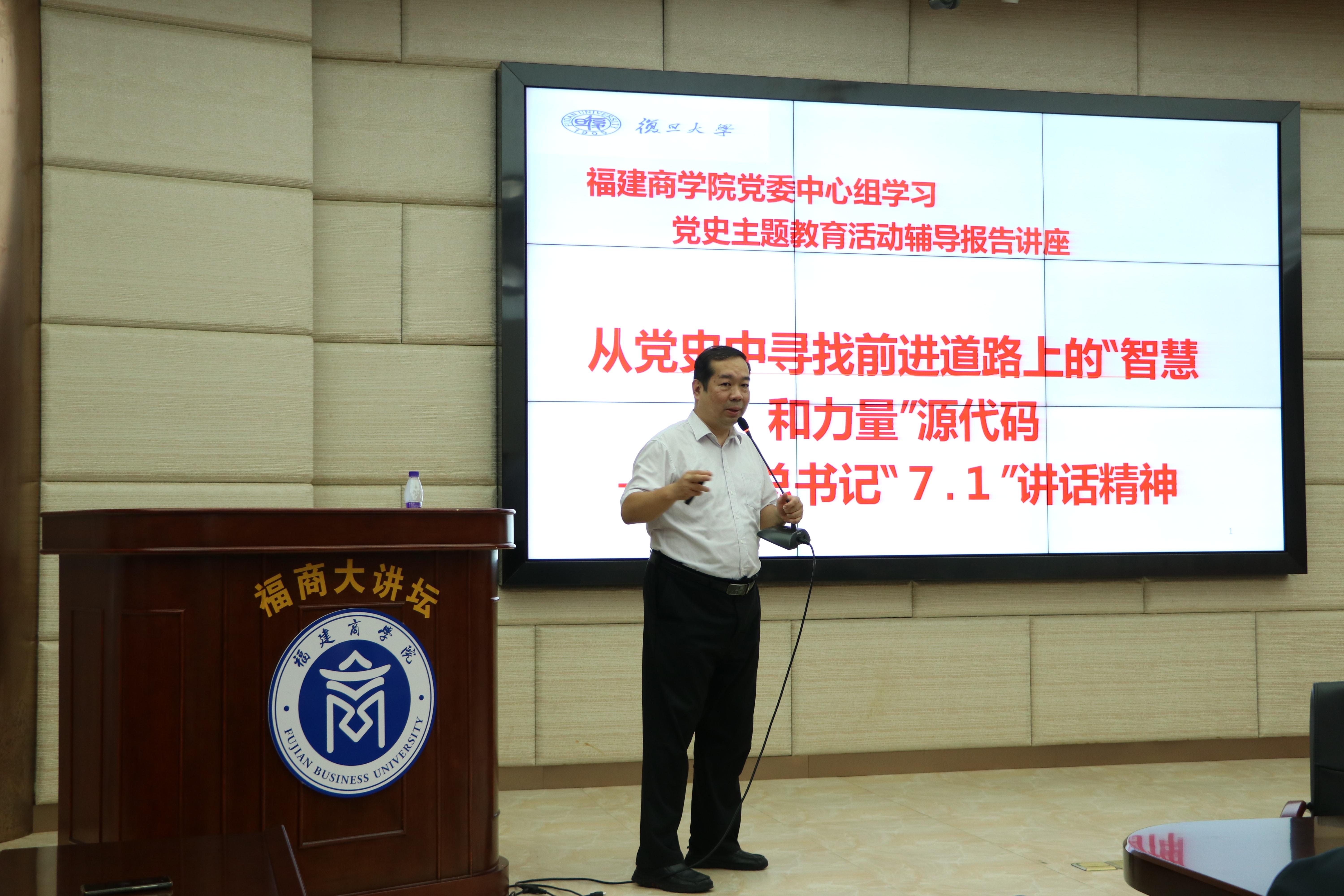 10月26日下午,必赢官网举行校党委理论学习中心组党史学习教育专题辅导讲座,邀请复旦大学特聘教授、博士生导师贺东航教授到连江校区作题为《从党史中寻找前进道路上的“智慧和力量的源代码”——学习习近平总书记“七一”讲话精神》专题讲座。校党委理论中心组全体成员、有关处室负责人及马克思主义学院全体教师参加学习。校党委副书记徐晓丹主持讲座。