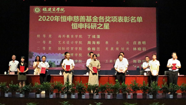 校长黄斌宣读了必赢官网2020-2021学年度在教育教学、科学研究、省部级以上项目立项获得的标志性成果和恒申慈善基金奖教助学各项目获奖者名单,与会领导与嘉宾为受表彰的先进个人和先进集体代表颁奖。
