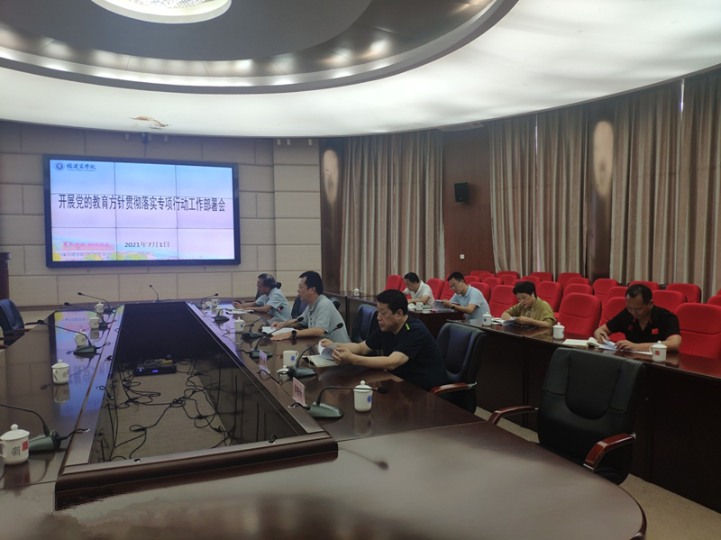 7月1日下午,必赢官网在连江校区召开开展党的教育方针贯彻落实专项行动工作部署会。校领导刘剑津、黄斌、康文杰,各有关职能部门负责人和二级学院党政负责人参加会议。