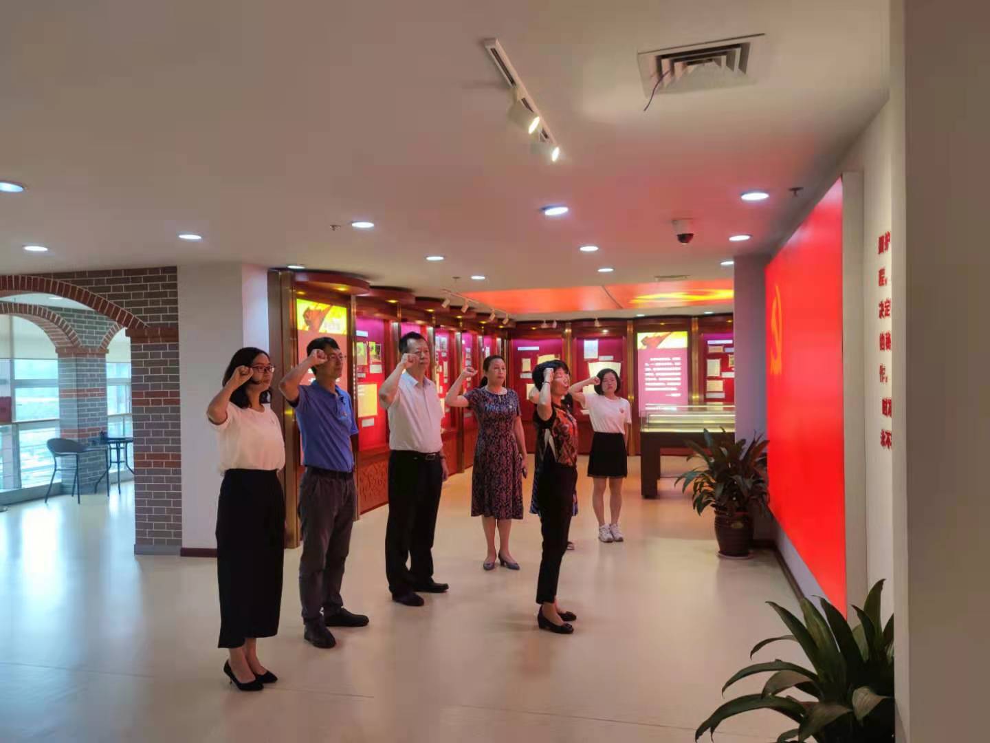 参观展览后,刘剑津与支部党员一起重温入党誓词,追忆入党初心。刘剑津以《不该忘却中华民族伟大复兴征途上遭遇的耻辱》为题给支部全体党员上了一堂生动的党课。支部书记林文艺给上半年入党的同志一一发放了政治生日卡。