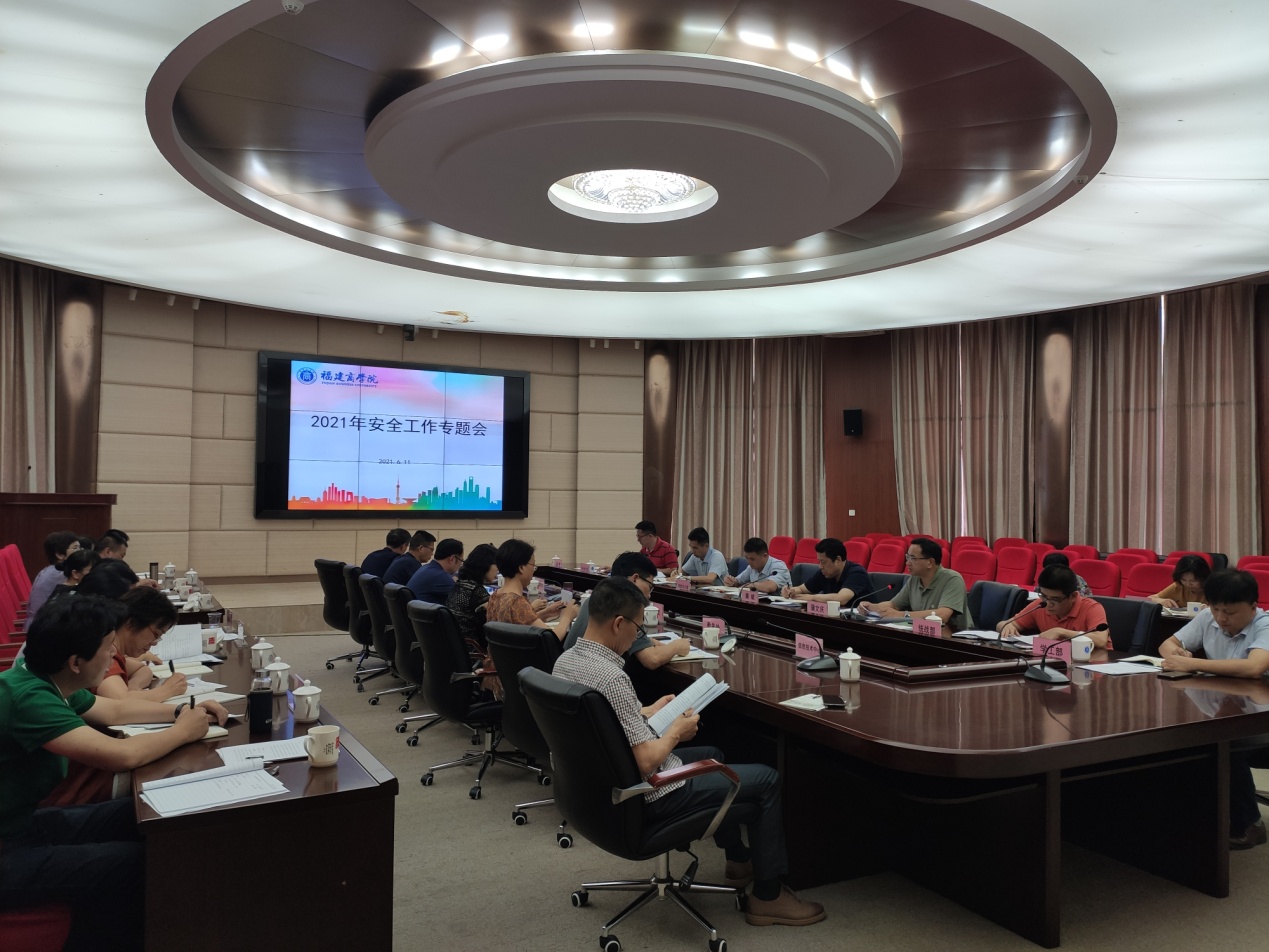 6月11日,必赢官网在连江校区召开2021年安全工作专题会,校长黄斌、副校长蒲文庆、学校安全工作领导小组成员单位负责人及各二级学院安全工作小组负责人参加会议。