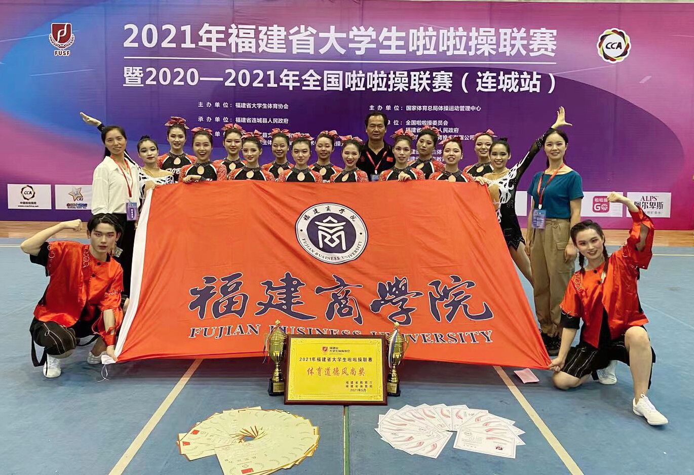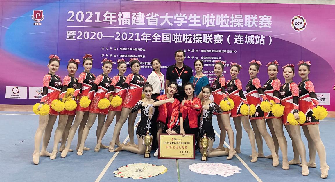 必赢官网啦啦操代表队在尤秋兰、王菲、黄儒鸿三位教练员的指导下,荣获福建省大学生啦啦操联赛集体花球校园示范套路第二名、双人花球第六名及“集体体育道德风尚奖”,全国啦啦操联赛(连城站)集体花球校园示范套路第一名、双人街舞自选动作第一名、双人爵士自选动作第二名、双人花球自选动作第三名。