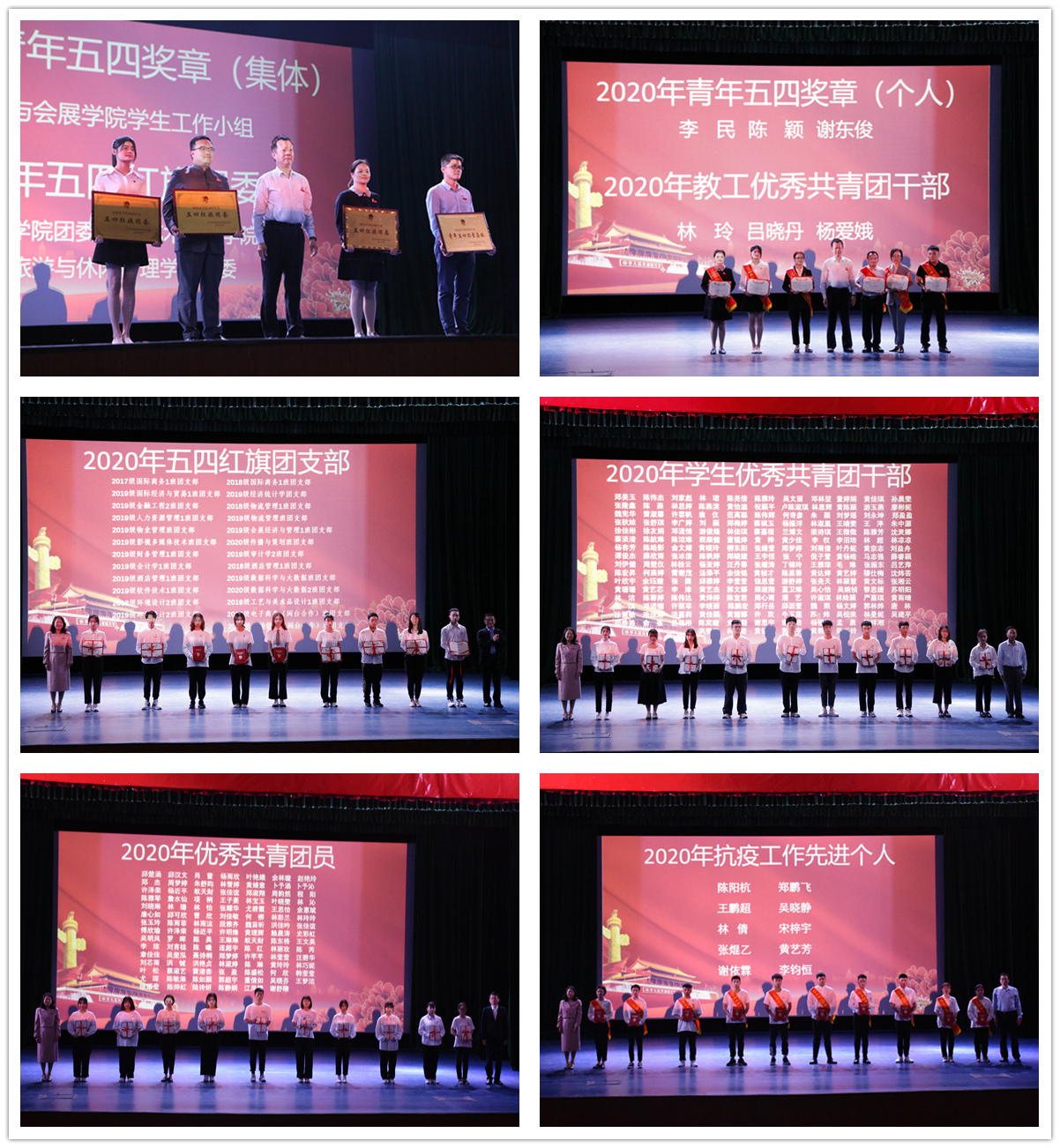 大会在雄壮的国歌声中拉开帷幕,校领导为获得“青年五四奖章”“五四红旗团委”“五四红旗团支部”“优秀共青团干部”“优秀共青团员”“抗疫先进个人”等荣誉的先进集体和先进个人颁奖。马克思主义学院谢东俊老师、工商管理学院游俊煌同学分别代表获奖师生发言。