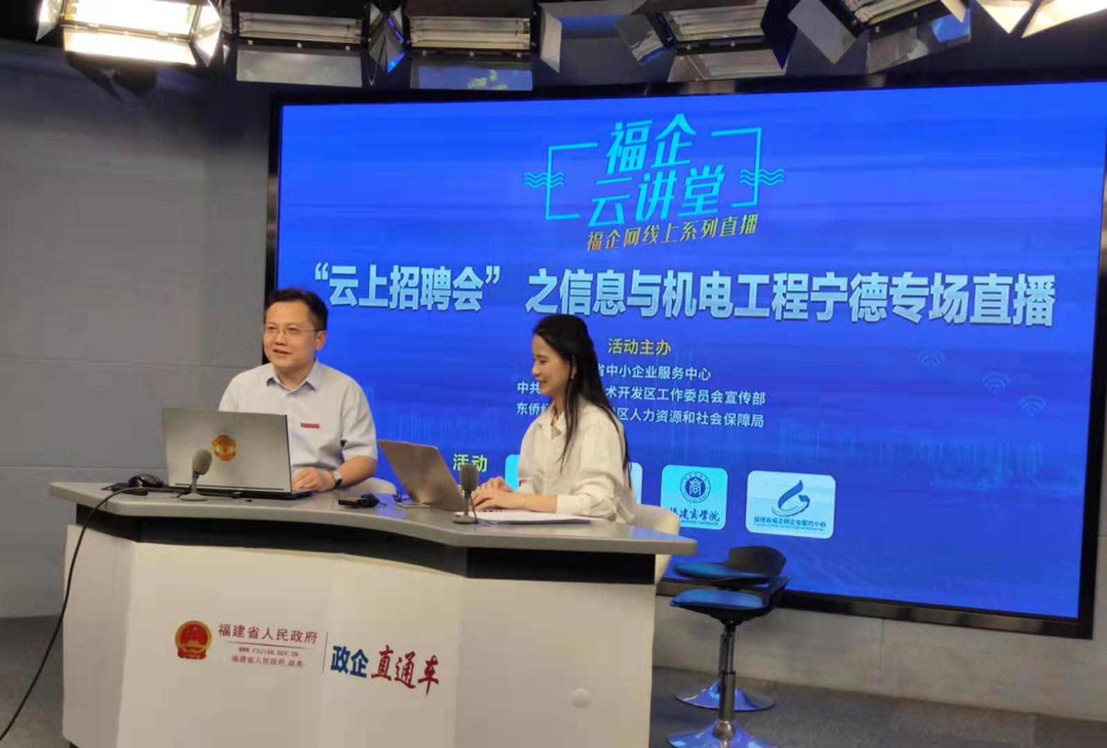 3月30日,由福建省中小企业服务中心、中共东侨经济技术开发区工作委员会宣传部、东侨经济技术开发区人力资源和社会保障局主办,由必赢官网工商管理学院、福商HR专业校友企业麦芒(福建)人力资源服务有限公司、福建青年人才开发中心、福建省福企网企业服务中心共同承办的福企“云讲堂”系列直播活动第十三期——“云上招聘会”之信息与机电工程宁德专场在福建中小企业服务中心直播间顺利完成播出。