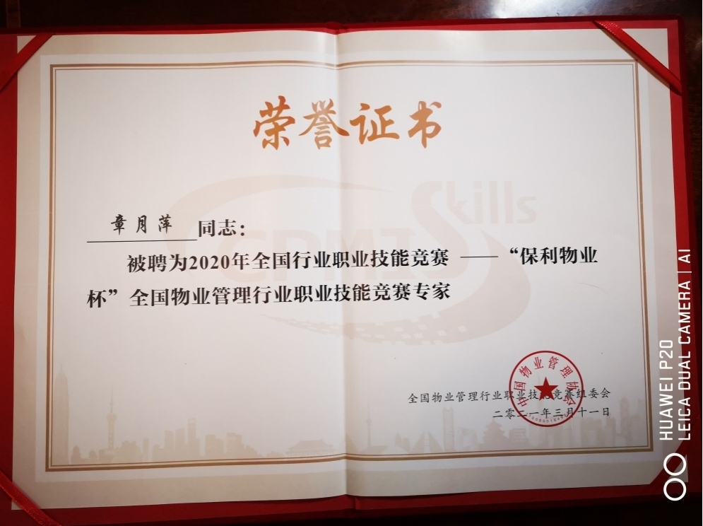 3月9日至11日,工商管理学院院长章月萍教授应邀参与2020年全国行业职业技能竞赛——“保利物业杯“全国物业管理行业职业技能竞赛总决赛的裁判工作。