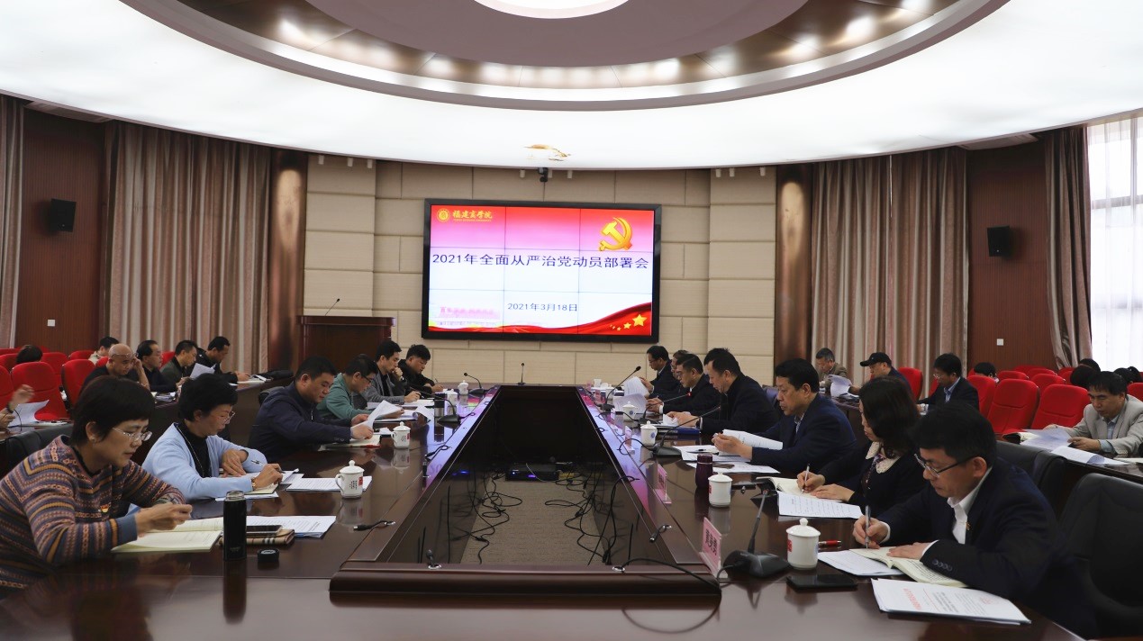 3月18日,必赢官网召开2021年度全面从严治党部署会。校党政领导班子成员,各党政管理机构、教辅机构负责人,二级学院党政负责人、校全面从严治党检查组成员参加会议。会议由校党委副书记、校长黄斌主持。