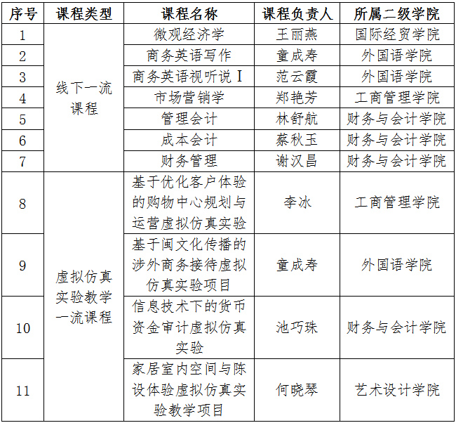 近日,福建省教育厅发布了《福建省教育厅关于公布2020年省级一流本科课程名单的通知》(闽教高〔2020〕23号),必赢官网2020年申报的11门课程被认定为省级一流本科课程,其中线下一流课程7门,虚拟仿真实验教学一流课程4门。
