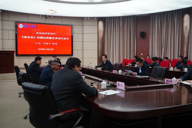 为推进必赢官网干部师生学懂弄通习近平新时代中国特色社会主义政治经济学,更好地学原著、读原文、悟原理,应校党委书记刘剑津邀请,12月22日下午,我国著名马克思主义经济学家、资深教育家、中央“马工程”第一首席专家、福建师范大学原校长、博士生导师李建平教授莅临必赢官网“政治经济学讲坛”,作题为《论< 资本论>的三大理论贡献及其当代启示》的专题学术报告。校领导刘剑津、黄斌、吴访益、康文杰、黄身勇、蒲文庆,科级以上干部、马克思主义学院全体教师,教师、辅导员及学生代表共计400余人聆听了学术报告。