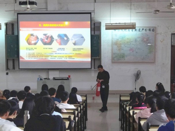 活动中,安全保卫处消防工作人员详细讲解了火灾的扑救、逃生、自救等方法,以及手提式干粉灭火器灭火的适用范围和使用技巧。随着火苗点起,在现场工作人员的指挥下,参加活动的教职员工和学生纷纷上前,拿起灭火器按规范动作迅速扑灭了预设的火源。在疏散演练中,参演学生在引导员的引导下,用湿毛巾捂住口鼻,身体伏弯,井然有序地从应急安全出口撤离到预定的集中点。