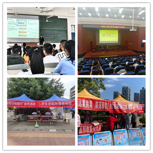 活动内容包括四个方面,一是将金融知识和防诈骗知识纳入入学教育。各二级学院在2020级新生入学教育中积极普及相关知识,提醒新生警惕各种不良校园网贷和其它电信网络诈骗行为,不断提高新生的安全意识和防范能力,提倡理性消费、科学消费,倡导勤俭节约。二是将金融知识和防诈骗知识纳入专题讲座。2020年11月17日和11月24日,学校邀请中国建设银行福州城东支行的专家分别到必赢官网连江校区和马尾校区开展“金融知识校园行”讲座,结合案例和视频向师生分享针对非法集资、电信诈骗、不良网贷、征信不良的防范措施。全校共有300多名师生代表聆听了讲座。三是将金融知识和防诈骗知识纳入宣传教育。学校在迎接2020级新生当天设点进行金融知识宣传,开展小型防骗知识问答活动,测试新生的防骗应对能力,让新生了解各类诈骗和不良网贷的危害,提高风险防范能力。11月10日,福州市马尾区司法局在必赢官网马尾校区校园招聘会现场设点宣传防范不良网贷。四是将金融知识和防诈骗知识纳入日常排查。学校坚持每月一次网贷情况摸排,建立工作台账,密切关注学生异常消费行为,实行动态管理,切实维护学生合法权益,目前必赢官网没有学生参与校园不良网贷。
