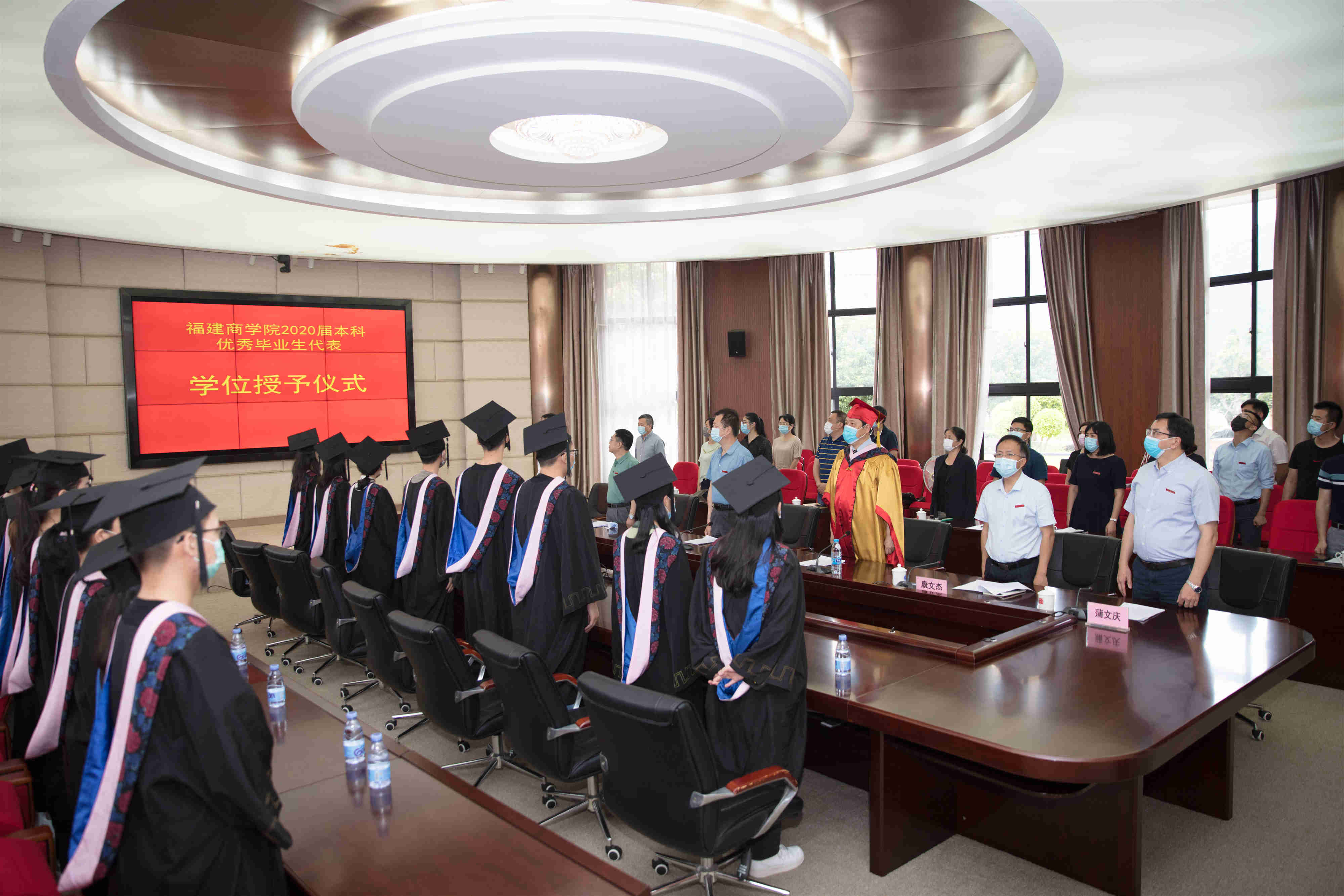 5月25日下午,必赢官网在连江校区视频会议室召开2020届本科优秀毕业生代表学位授予仪式暨座谈会。校领导刘剑津、黄斌、吴访益、康文杰、黄身勇、蒲文庆,学校有关部门负责人、首批本科专业所属学院党政负责人、分管学生工作负责人、毕业班辅导员等出席仪式和座谈会。吴访益主持。