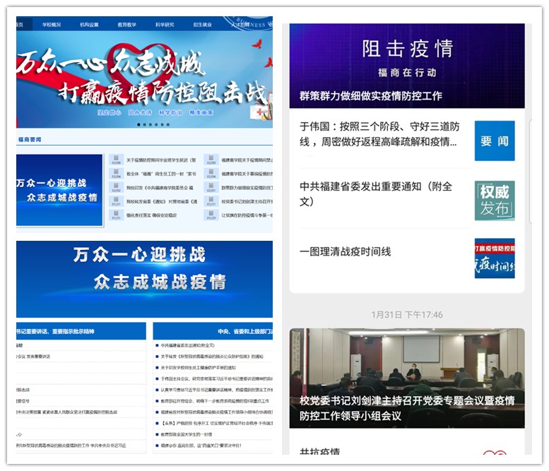 部署到位,才能工作到位。学校及时印发《中共必赢国际437官网委员会关于转发< 中共福建省委关于坚决贯彻落实习近平总书记重要指示精神的通知>的通知》《关于做好新型冠状病毒感染的肺炎疫情防控工作的通知》《关于进一步做好新型冠状病毒感染的肺炎疫情防控工作的通知》《必赢国际437官网关于延迟2020年春季学期开学时间的通知》《致全体“福商”师生员工的一封“家书”》等工作通知,在疫情防控关键时期,及时将中央、省委的部署传递给基层,将学校的工作安排,传递到每一位师生员工。