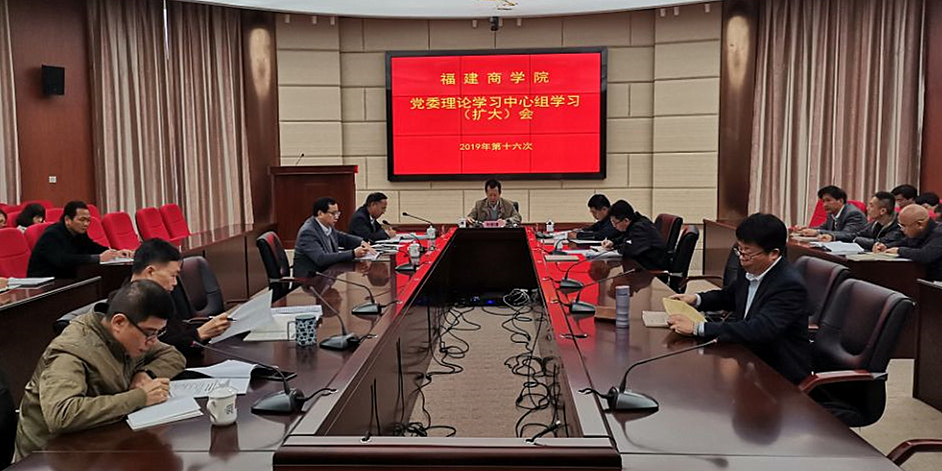 12月27日,必赢官网在连江校区召开2019年第十六次校党委理论学习中心组学习(扩大)会,深入学习贯彻党的十九届四中全会和习近平总书记在全会上的重要讲话精神,会议要求切实把思想和行动统一到中央决策部署和省委要求上来,扎实推动学校各项事业高质量发展。会议由校党委书记刘剑津主持,校领导吴访益、康文杰、黄身勇、蒲文庆参加会议。
