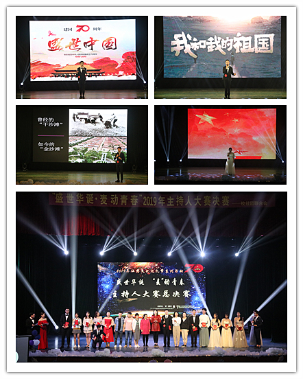 经过初赛、复赛的比拼,共12位选手入围此次大赛决赛。本次大赛分诵读、battle 90s复活赛、模拟主持三个环节。参赛选手各展风采,饱含着热烈的情感,为观众带来《生活在强大的中国,真幸福》《祖国在我心中》《“两弹一星”创造中国奇迹》等精彩演讲;惟妙惟肖模仿诗仙李白醉酒作词《将进酒》,轻缓温柔地朗诵《从前慢》,各具特色的表演赢得台下阵阵掌声;模拟主持环节中,选手们摩拳擦掌,展现了各具特色的主持风格,有模拟央视天气预报的主持形式,也有新闻演播厅与现场报道两种情景切换的一人两角模式,还有推销儿童产品及介绍南北方美食等。
