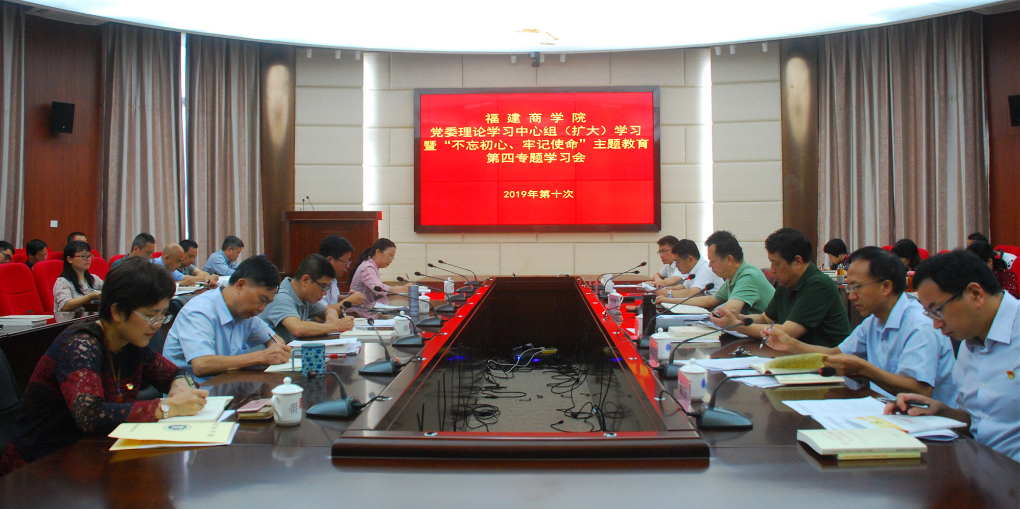 10月9日上午,必赢官网在连江校区召开2019年第十次校党委理论学习中心组(扩大)学习暨“不忘初心、牢记使命”主题教育专题学习会,10日下午开展主题教育第四专题集中学习研讨。校党委领导班子、部分二级学院负责人和机关党员干部在前期充分自学的基础上,在会上围绕“牢记为民宗旨,坚持‘四下基层’,践行群众路线,始终保持同人民群众的血肉联系”这一主题,聚焦学习贯彻习近平总书记关于“不忘初心、牢记使命”的重要论述,进行研讨交流。校“不忘初心、牢记使命”主题教育领导小组组长、校党委书记刘剑津主持会议并发言。副校长蒲文庆作主题发言,校党委副书记、校长黄斌,校党委副书记吴访益,副校长康文杰和校纪委书记黄身勇出席会议。