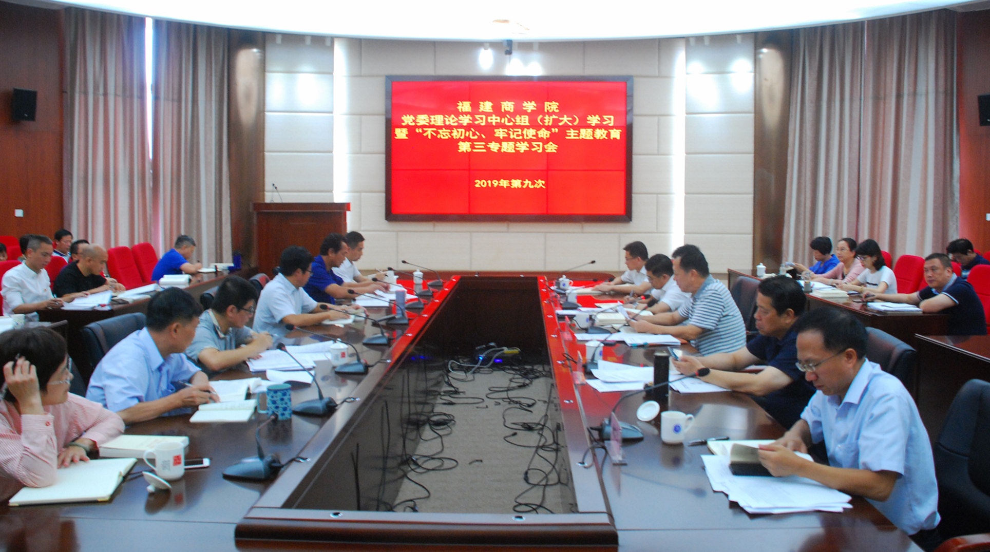 9月27日,必赢官网在连江校区召开2019年第九次校党委理论学习中心组学习(扩大)暨“不忘初心、牢记使命”主题教育专题学习会,开展主题教育第三专题集中学习研讨。校党委领导班子、部分二级学院负责人和机关党员干部在前期充分自学的基础上,在会上围绕“加强政治建设”这一主题,聚焦学习贯彻习近平总书记关于“不忘初心、牢记使命”的重要论述,进行研讨交流。校“不忘初心、牢记使命”主题教育领导小组组长、校党委书记刘剑津主持会议并发言。校党委副书记吴访益作主题发言,校党委副书记、校长黄斌、副校长康文杰和校纪委书记黄身勇出席会议。